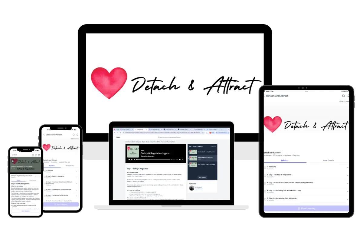 ❤️ Detach & Attract is a structured 7-day hypnosis reset designed to calm your nervous system and break the emotional loop.