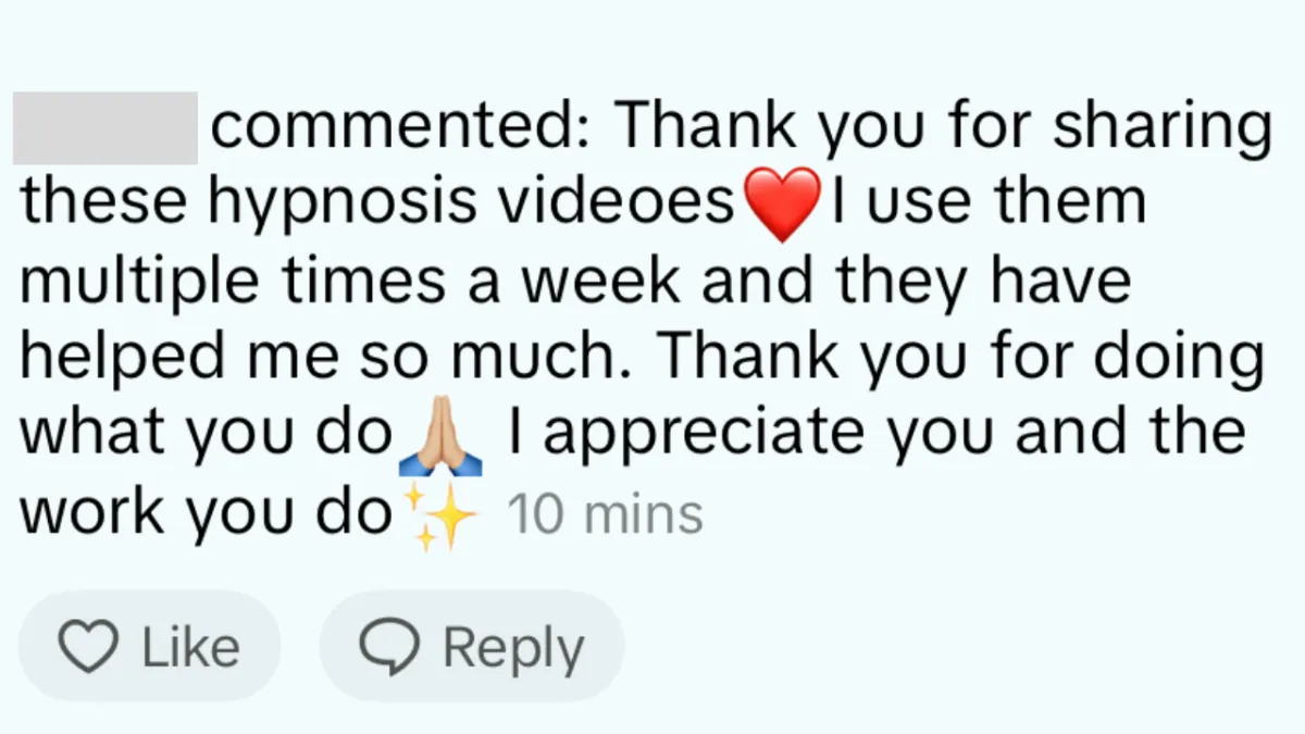 ✅ 7 full-length daily hypnosis sessions (one per day) – approximately 30 minutes each